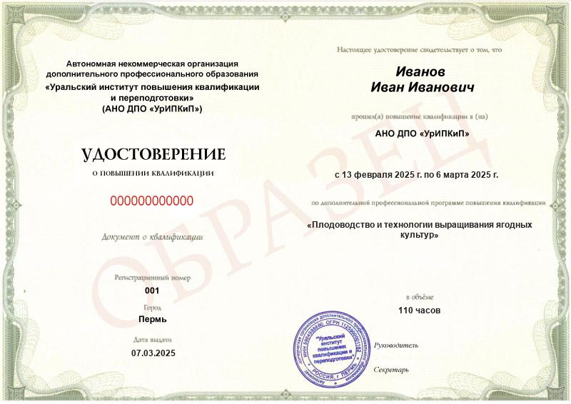 Курс обучения Плодоводство и технологии выращивания ягодных культур (110ч)