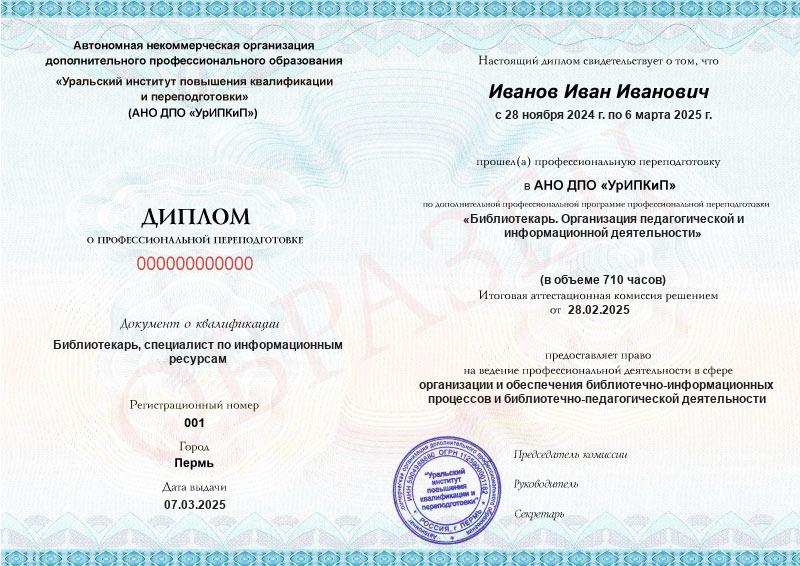 Курс обучения Библиотекарь. Организация педагогической и информационной деятельности (710ч)