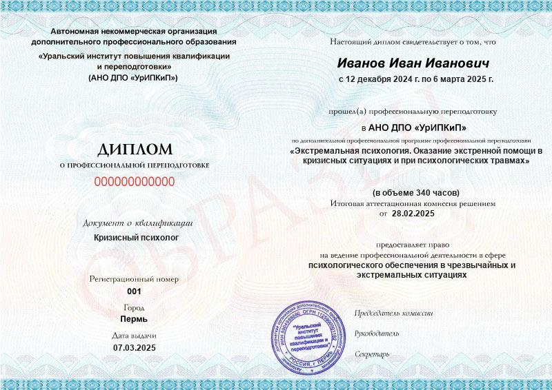 Да, дипломы и удостоверения оформляются в соответствии с действующим законодательством РФ. Документы печатаются на специальных бланках, заверяются печатью АНО ДПО «УрИПКиП».