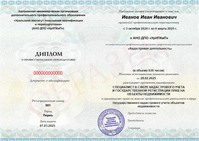 Да, дипломы и удостоверения оформляются в соответствии с действующим законодательством РФ. Документы печатаются на специальных бланках, заверяются печатью АНО ДПО «УрИПКиП».