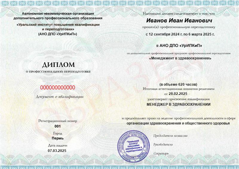 - Образец диплома о профессиональной переподготовке.