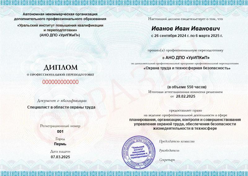 - Образец диплома о профессиональной переподготовке.