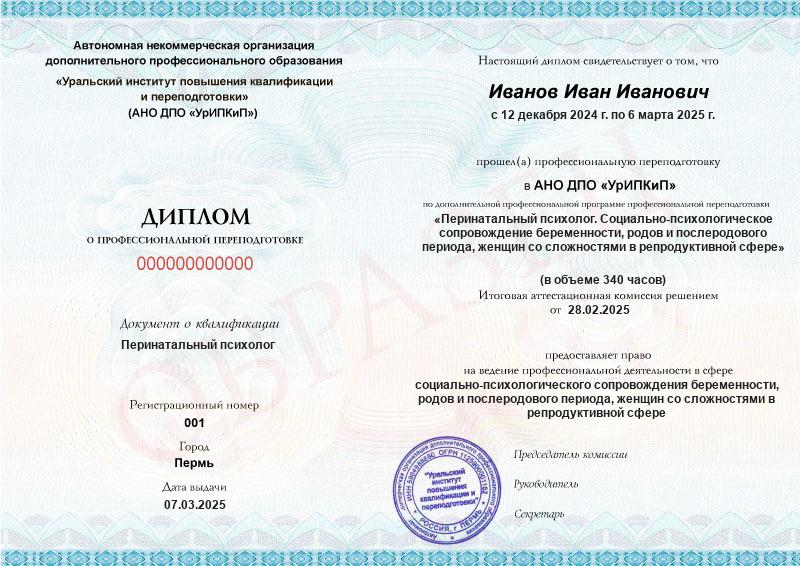 Перинатальный психолог. Социально-психологическое сопровождение беременности, родов и послеродового периода, женщин со сложностями в репродуктивной сфере (340ч)