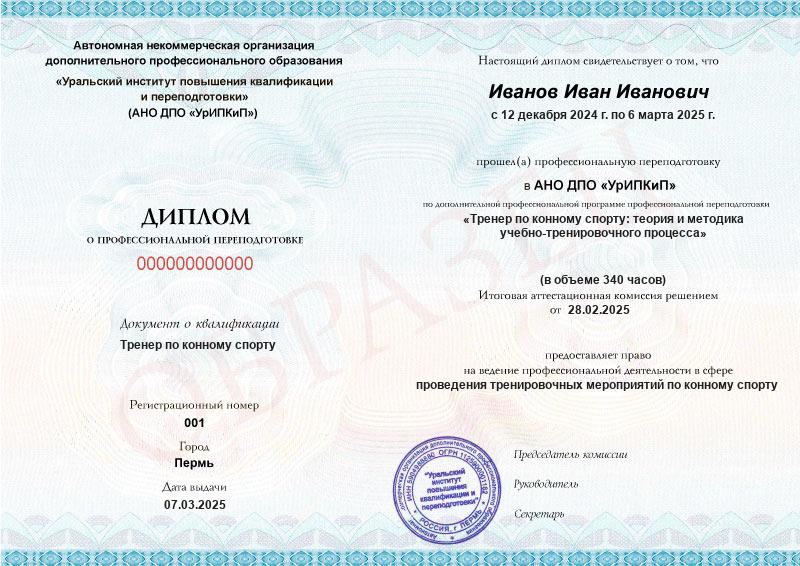 Курс обучения Тренер по конному спорту: теория и методика учебно-тренировочного процесса (340ч)