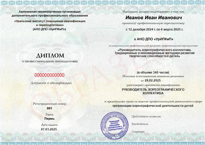 Обзор программы профессиональной переподготовки «Руководитель хореографического коллектива. Традиционные и инновационные методики развития творческих способностей детей» с присвоением квалификации «Руководитель хореографического коллектива»
