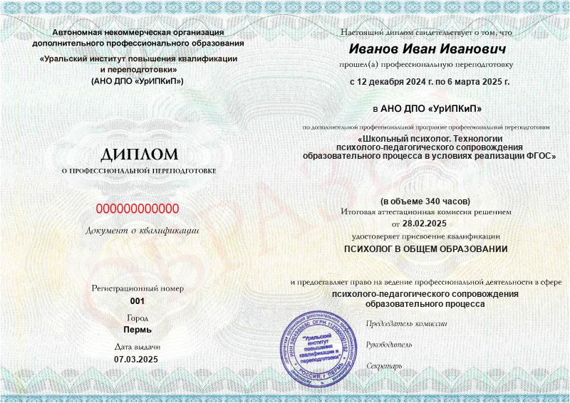 Да, дипломы и удостоверения оформляются в соответствии с действующим законодательством РФ. Документы печатаются на специальных бланках, заверяются печатью АНО ДПО «УрИПКиП».