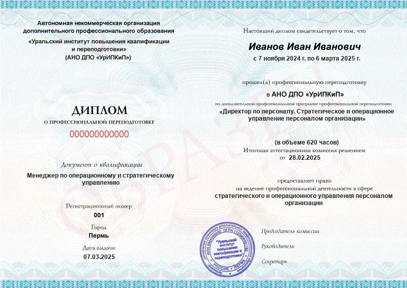 - Образец диплома о профессиональной переподготовке.