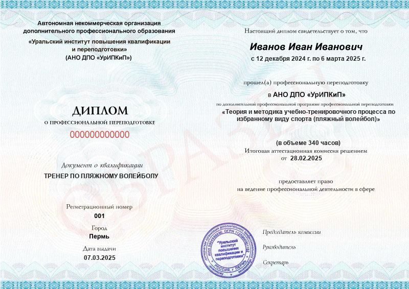 Обзор программы профессиональной переподготовки «Теория и методика учебно-тренировочного процесса по избранному виду спорта (пляжный волейбол)» с присвоением квалификации «ТРЕНЕР ПО ПЛЯЖНОМУ ВОЛЕЙБОЛУ»